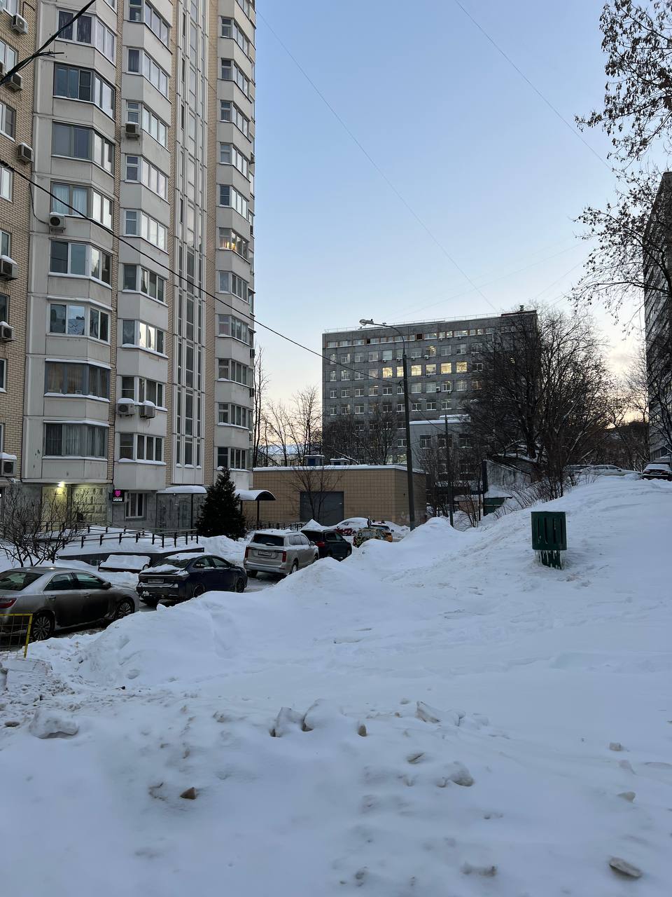 Заходим во двор. Внимание! ПОСЛЕ красивых помойных ящиков берем ЛЕВЕЕ по дорожке вниз к желтому 17-этажному дому.
