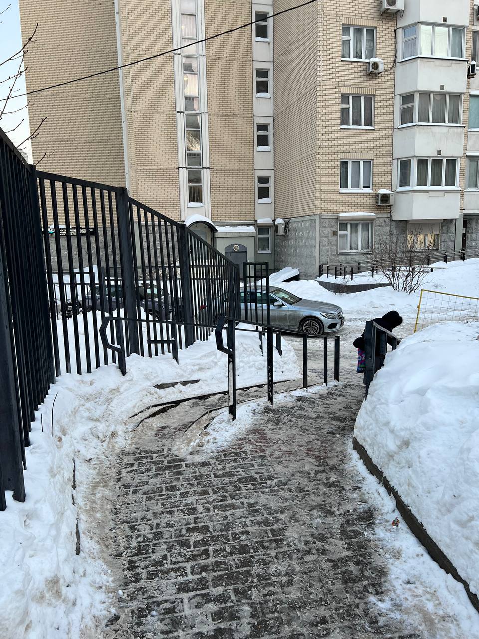 Спускаемся по лесенке и поворачиваем НАПРАВО, обходим желтый жилой дом справа как идет дорожка.