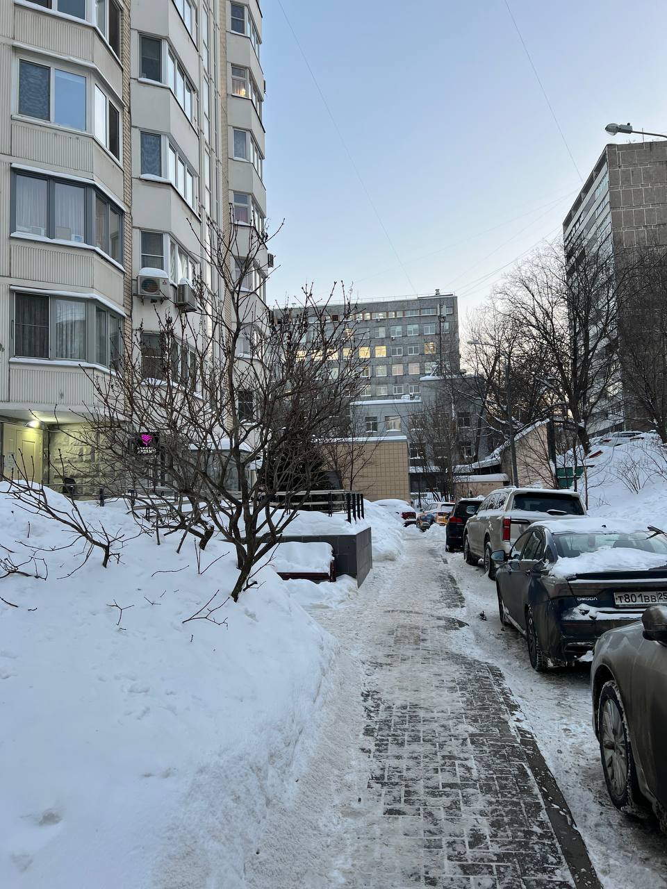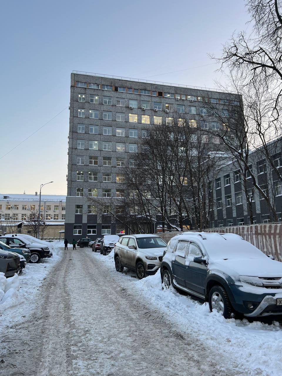 ПРОХОДИМ ВНУТРЬ ДВОРА К СЕРОМУ 10-ЭТАЖНОМУ ЗДАНИЮ.