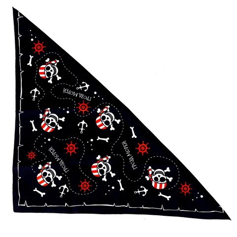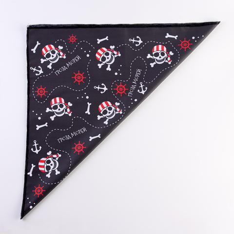 Шикарная трехцветная бандана «Гроза морей», с рисунками в виде костей, черепа и якорей.