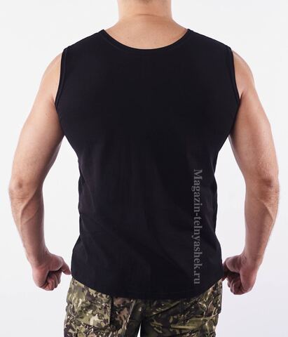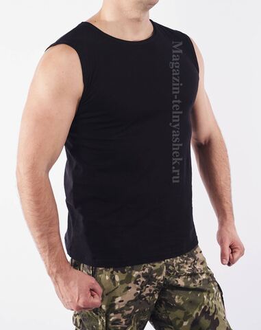 Удобная безрукавка с широким плечом черного цвета хорошо подойдет как для повседневной носки, так и для любителей активного отдыха на природе.