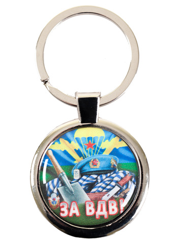 Крутой брелок с саперной лопаткой, беретом, ножом, и, конечно, голубой тельняшкой на фоне флага ВДВ станет отличным сувениром ко Дню ВДВ, на 23 февраля или просто так.