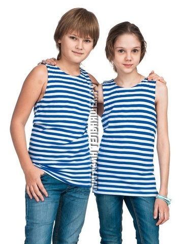 Майка-тельняшка имеет голубые полосы (Воздушно-десантные войска РФ).