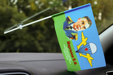 Флаг ВДВ "Маргелов" на присоске идеален для размещения в салоне автомобиля.