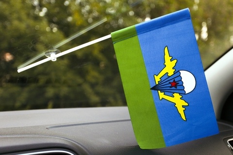 Флаг ВДВ СССР с белым куполом на присоске идеален для размещения в салоне автомобиля.