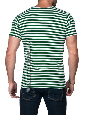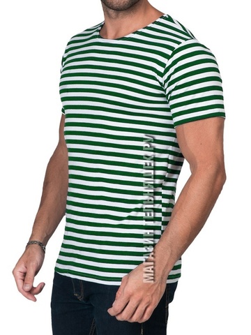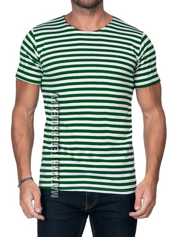 На такой футболке-тельняшке с зеленой полосой можно выполнить печать.