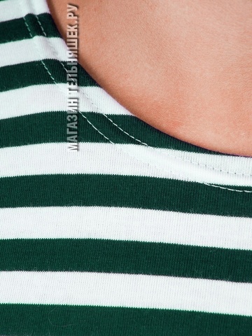 Для производства зеленой футболки-тельняшки наш поставщик использует полотно кулирка, которое считается наиболее износостойким. Активное крашение нитей полотна способствует сохранению цвета изделия, которое не линяет даже после частых стирок. В такой футболке можно активно двигаться, отдыхать и заниматься спортом, в том числе на солнце.