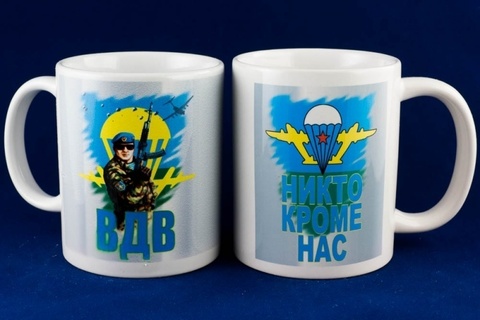 Эффектная керамическая кружка ВДВ с легендарным девизом "Никто кроме нас!" станет отличным и недорогим подарком.
