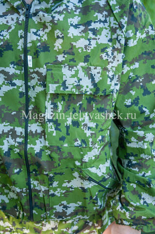 Легкий летний маскировочный костюм в расцветке "Лес". Маскхалат отлично подойдет для носки на теле в жаркую погоду, поверх одежды с целью маскировки и для игры в пэйнтбол или страйкбол. Состоит костюм из куртки на молнии и брюк.