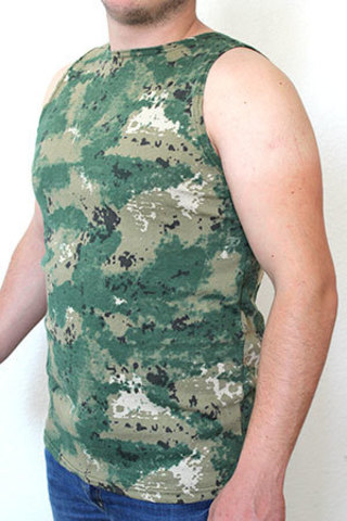 Майка камуфлированная Лесной (зеленый) связана из трикотажного полотна кулирная гладь.
