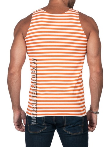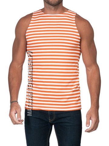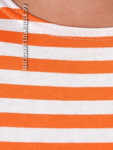 Майка-тельняшка с оранжевой полосой свфязана из нитей двух цветов, одинаковая снаружи и внутри (а не крашенная сверху!).