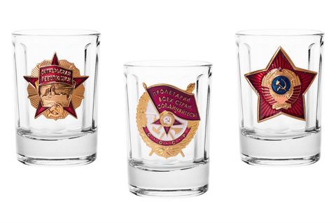 Набор водочных стопок с барельефами в виде орденов СССР.