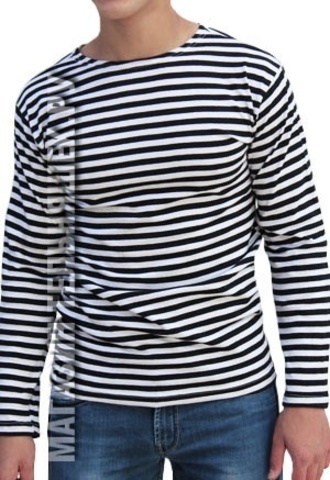Тельняшка с черной полосой связана из нитей двух цветов (а не крашенная сверху!).
