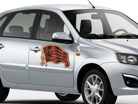 Наклейка всепогодная, может применяться как автомобильная, имеет клеевую основу, безопасную для лакокрасочных покрытий, что делает ее пригодной для использования как на стекле, так и на кузове автомобиля.