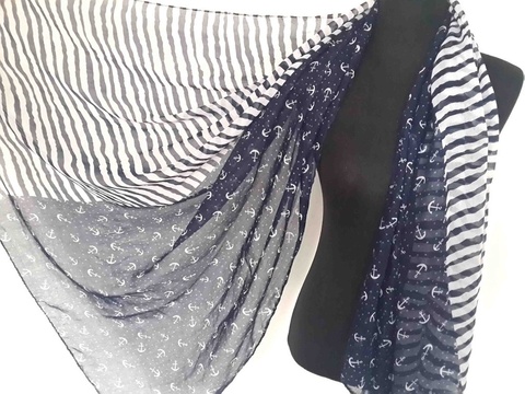 Шикарный шарф-палантин в морском стиле с якорями и стилизованной полоской!