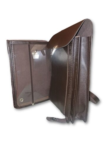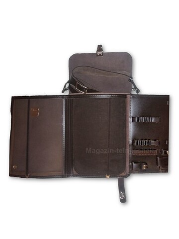 Полевой планшет-сумка имеет ремешок с регулировкой по длине, качественную фурнитуру из металла, 2 шнура для фиксации карт и 2 створки, которые оснащены отсеками для измерительных приборов и канцелярии.