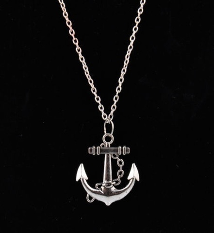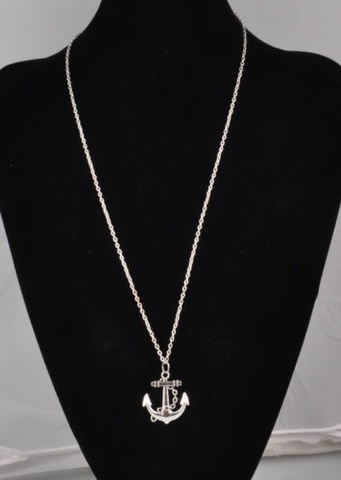 Стильная подвеска из металла серебристого цвета в виде якоря с канатом.