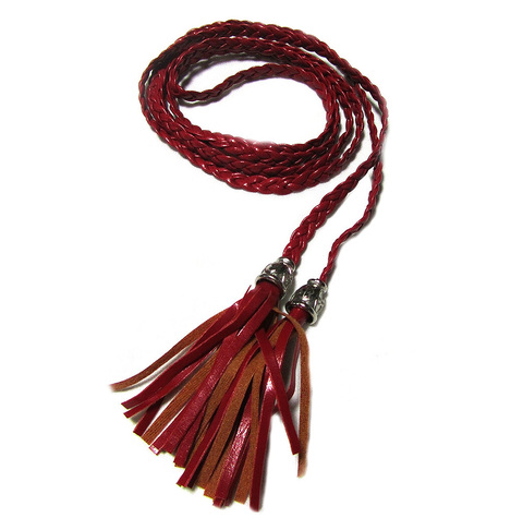Милый поясок-канатик выполнен в виде косички с кисточками на концах и отлично подойдет к любому платью или тунике в морском стиле.