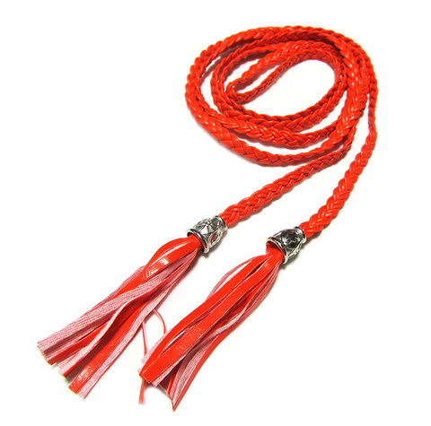 Озорной поясок-канатик выполнен в виде косички с кисточками на концах и отлично подойдет к любому платью или тунике в морском стиле.