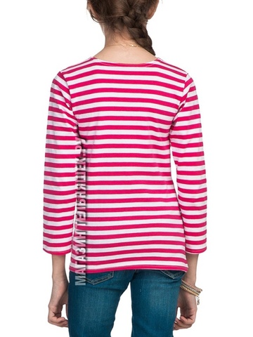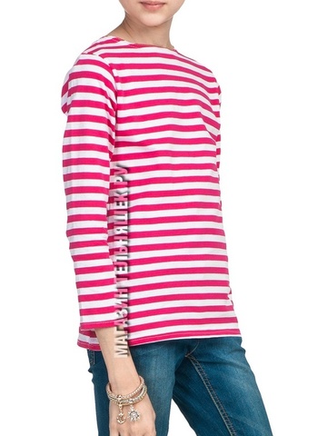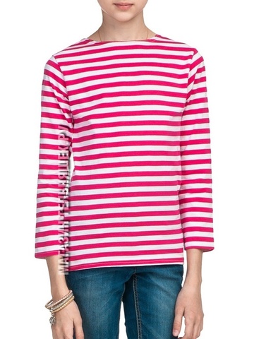 Яркая летняя розовая тельняшка для девочки с длинным рукавом из трикотажного полотна кулирная гладь.