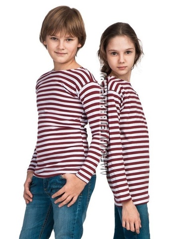 Тельняшка для ребенка с длинным рукавом из трикотажного полотна кулирная гладь.