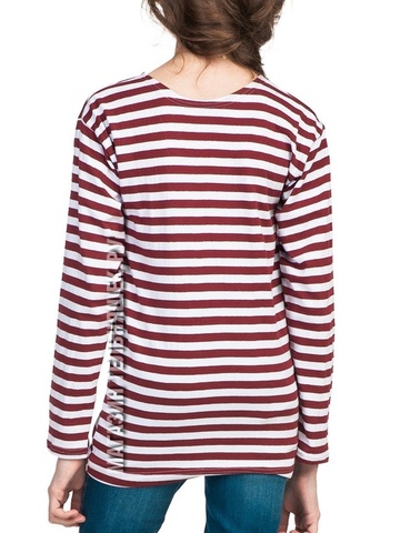 Тельняшка связана из нитей двух цветов, одинаковая снаружи и внутри (а не крашенная сверху!).