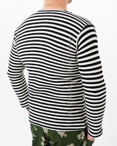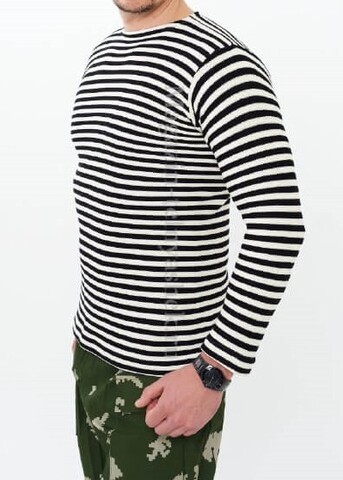 Тельняшка с черной полосой связана из нитей двух цветов.