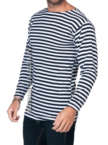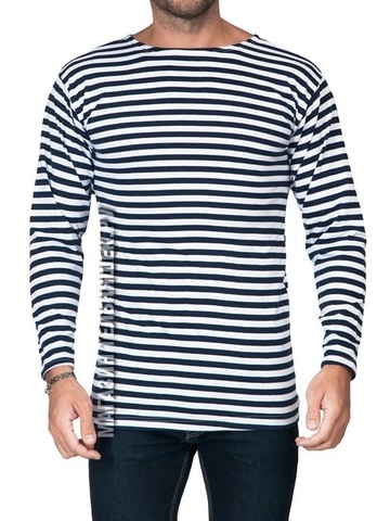 Летняя тельняшка ВМФ с длинным рукавом из трикотажного полотна кулирная гладь.