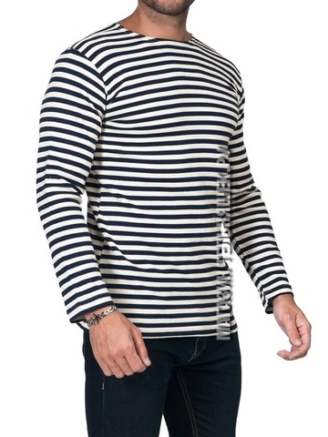 Летняя тельняшка ВМФ с длинным рукавом из трикотажного полотна интерлок.
