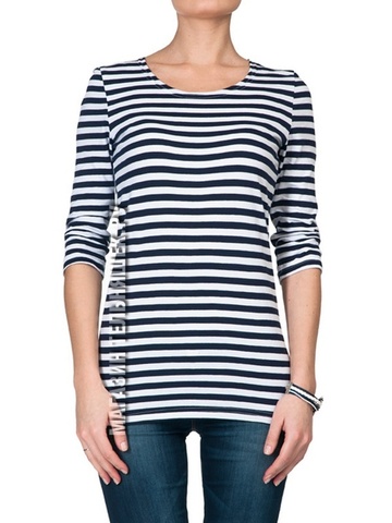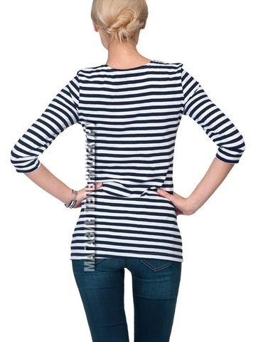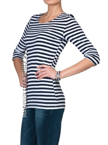Женская тельняшка с рукавом 3/4 из 100% хлопковой ткани кулирная гладь.