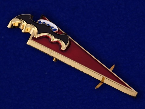Уголок на голубой берет десантника РАЗВЕДКА с белым куполом.