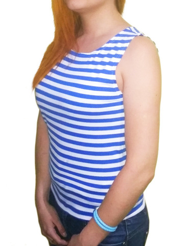 Майка-тельняшка связана из нитей двух цветов, одинаковая снаружи и внутри (а не крашенная сверху!).