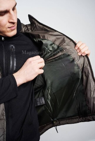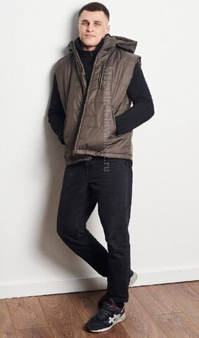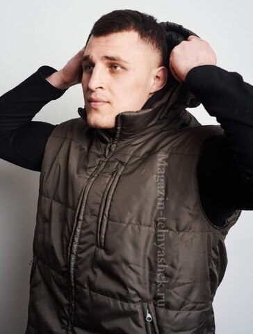 Мужской утепленный жилет прямого силуэта однотонной расцветки "хаки".